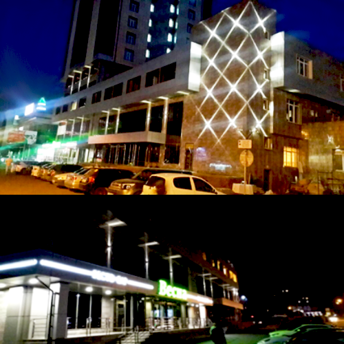 Монтаж системы фасадного освещения